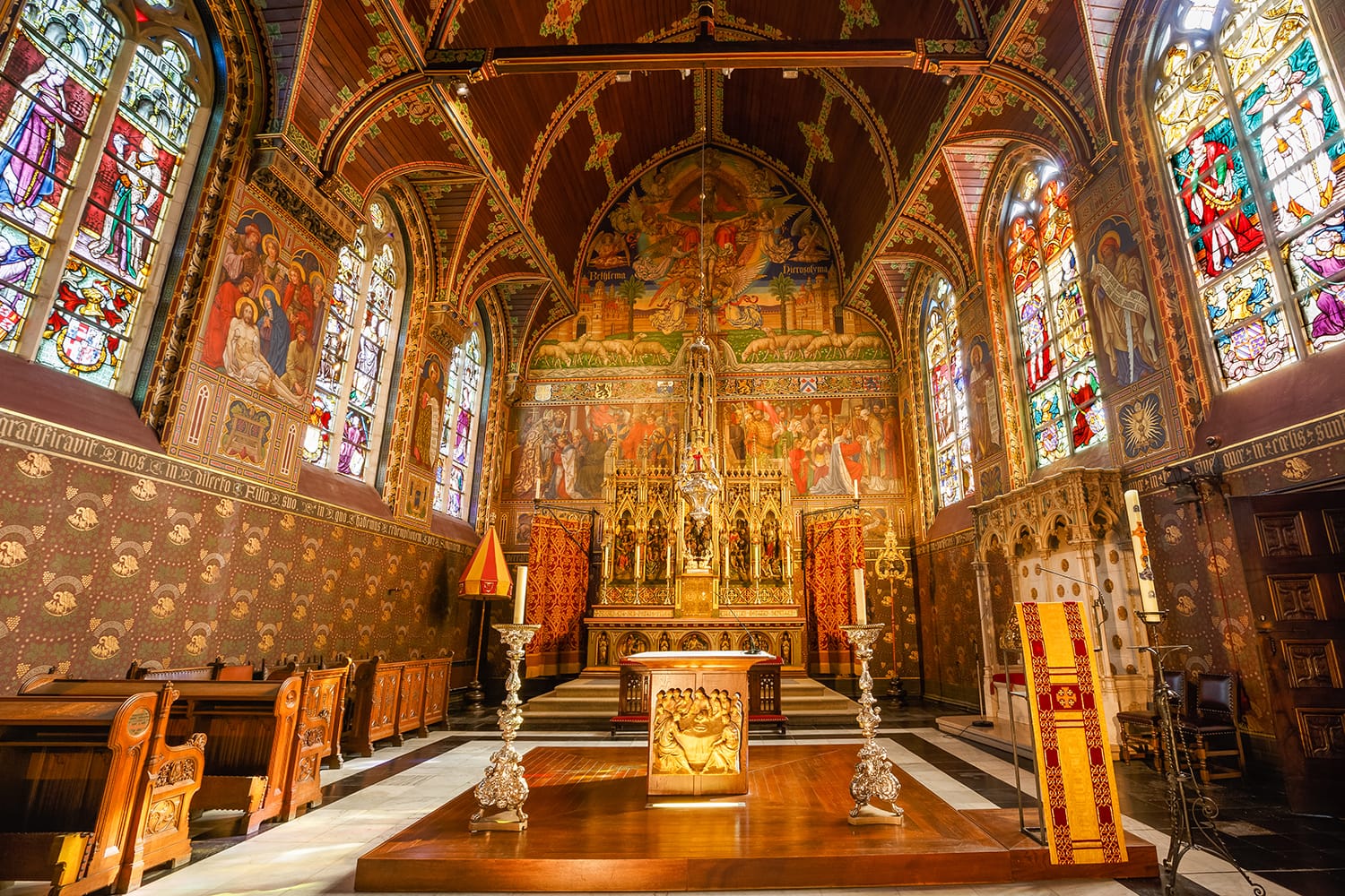まずは聖バーフ大聖堂から始めましょう。有名な「神秘の子羊の礼拝」の祭壇画がある印象的な大聖堂です。大聖堂の周囲には広大な歩行者専用エリアがあり、エレガントなゲントの鐘楼からモダンなシティ パビリオン、堂々とした市庁舎まで、市内の主要なランドマークがいくつかあります。