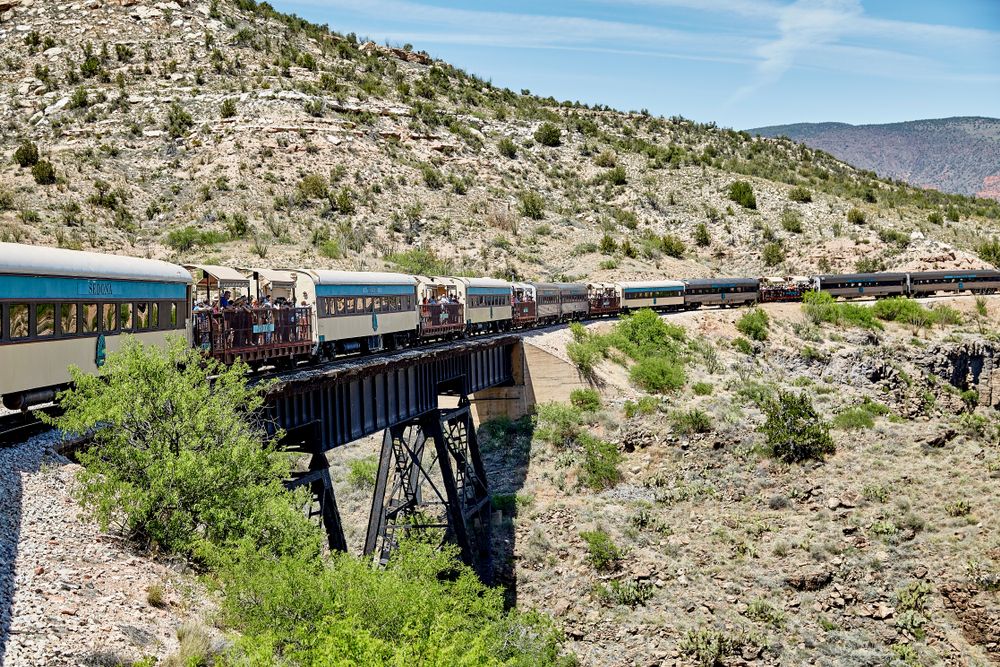 のヴェルデキャニオン鉄道ベルデ川沿いを移動し、動植物、砂漠の岩ビュート、さまざまな野生動物に囲まれ、旅行者に数多くの素晴らしい景色を提供します。巨大な人工トンネルや魅力的なインディアン遺跡、その他の自然の驚異を備えた歴史的なルートです。 2 月のチョコレート ラバーズ スペシャルやワインとビールの乗り物など、年間を通じて特別なイベントが開催されます。