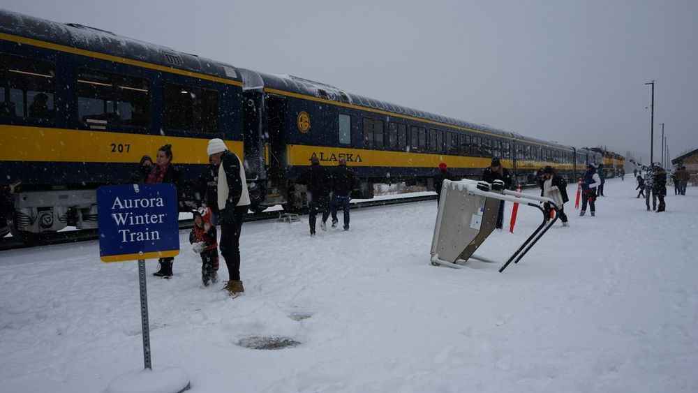 デナリ州立公園駅のオーロラウィンタートレイン。