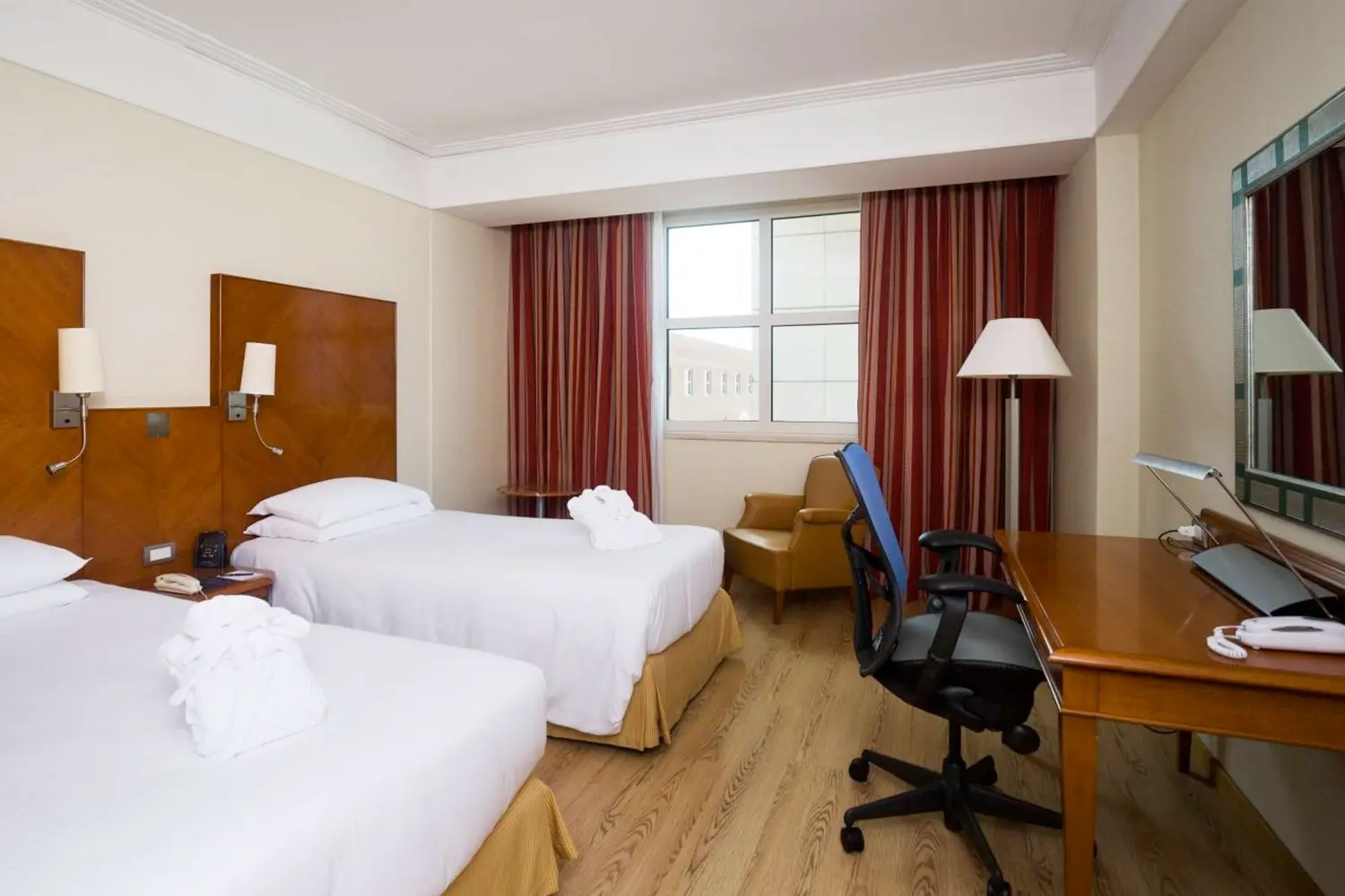 ヒルトン ローマ エアポートは、FCO ターミナル 1 ~ 3 と屋根付き陸橋で直接接続されており、利便性が抜群です。高級アメニティ、高級レストラン、温かいもてなしは、ここで体験できる追加のほんの一部です。ホテルの現代的で洗練されたスタイルの客室では、見事な木の床、クラシックな家具、カスタムデザインのベッドがお出迎えします。お腹が空いたら、館内レストラン 2 軒をご利用ください。 Caffè Tevere Bistròではピザやハンバーガーなどのカジュアルな食事を楽しめます。また、Le Colonne Restaurantでは朝食、ランチ、ディナーにビュッフェ式テーブルを用意しており、イタリア料理や各国料理に加えてローマ料理も楽しめます。ローマに来たら、ローマ人のように、アーティスト バーでワインやカクテルを飲みながら食前酒を楽しんでください。音楽愛好家にとって、アーティスト バーは夜にはピアノ バーとしても機能します。滞在中にローマの人気観光スポットをいくつか楽しみたい場合でも、ヒルトン ローマ エアポート ホテルではローマのダウンタウンへの無料シャトルを 1 日 8 便提供していますので、ご心配なく。ローマに滞在するか観光するかにかかわらず、ヒルトン ローマ エアポート ホテルでの滞在は、ローマでの滞在中にリラクゼーションと生産性の理想的なバランスを提供してくれるでしょう。