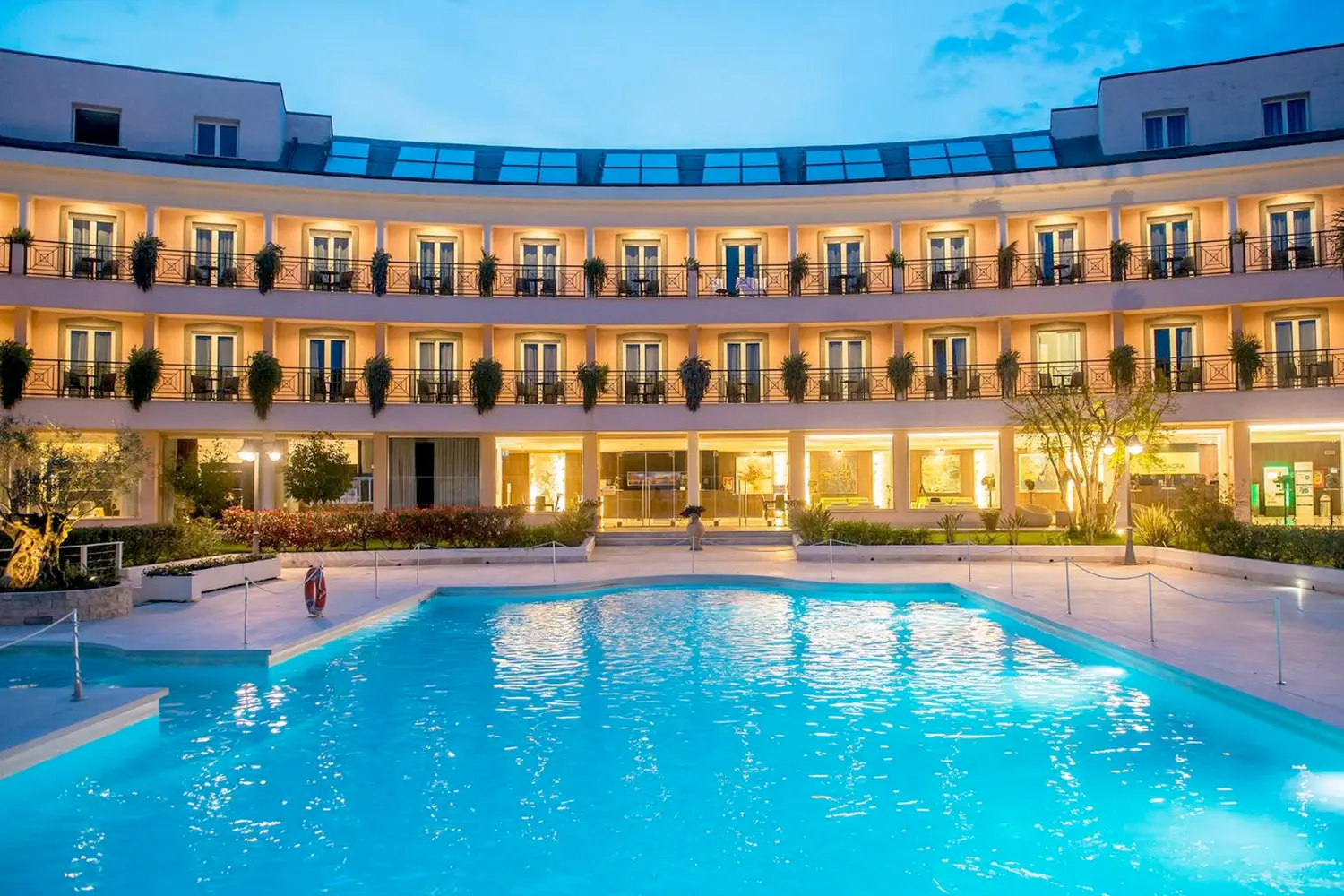 ポルトゥスのオアシスの緑豊かで魅惑的な楽園に位置するこの豪華な 5 つ星リゾートは、かつての浴場の中にあり、自然の美しさに囲まれながら、完全にリラックスして王族のように扱われることができます。エレガントな内装の客室では、お客様のあらゆるニーズにお応えするための無料ギフトをご用意しております。クラシックなデザインの全客室からは周囲の公園の景色を眺めることができ、一部の客室には専用テラスも付いています。カントリーシックなホテルには、健康とリラクゼーションを最大限に高めるためのウェルネスセンター、ジム、スパが完備されています。バイオ サウナとさまざまなマッサージやトリートメントを備えた屋内スパを利用できるだけでなく、感覚浴槽、ハイドロ マッサージ シート、日本風呂、インフィニティ プールを備えた屋外ウェルネス ファームにも行くことができます。 QC テルメローマ スパ アンド リゾートに 1 泊でも滞在すれば、なぜローマの空港近くの最高のホテルのリストにこのホテルが選ばれたのかがすぐにわかるでしょう。