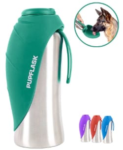 タフプッパーPupflaskポータブルウォーターボトルは、外出中に迅速かつ使いやすいです。犬用のこのトラベルウォーターボトルは、27オンスと40オンスのオプションで提供され、BPAフリーの腹筋から作られています。余分な大きなカップは、犬が簡単に飲むことができる食品グレードのシリコンで作られています。可逆的な葉型のカップは、使用されていないときにボトルの上に平らになります。漏れ防止シール、クイックリリース水ボタン、およびボトルに余分な水を排出する機能が含まれています。また、食器洗い機セーフなので、徹底的に掃除できます。大きな犬の場合、タフプッパーPupflaskポータブルウォーターボトルは間違いなく良い選択です。