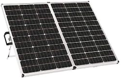 Renogy 単結晶ポータブル折りたたみソーラー パネル スーツケースは、ポータブル電源ソリューションの究極のオプションの 1 つです。重さ約27ポンドのこのスーツケースには、50ワットの単結晶ソーラーパネル2枚、20アンペアの防水ボイジャー充電コントローラー、ワニ口クリップ付きの10フィートのトレイケーブル、保護用のケースが付属している。 1 日あたり最大 500 ワット時の出力があり、使用しないときは 19.9 インチ x 27.2 インチ x 2.8 インチに折りたためます。充電コントローラーには LCD ディスプレイが含まれており、アルミニウム製スタンドは調整可能で耐腐食性があります。IP65 の防水設計により、RV 旅行に最適なポータブル ソーラー パネルの 1 つです。