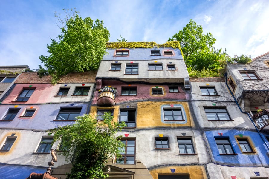 色とりどりのフンデルトヴァッサー ハウスを見たら笑顔になれない人はいないでしょうか。この素晴らしいアパートメントは、フリーデンスライヒ フンデルトヴァッサー氏とジョゼフ クラウィナ氏の協力により制作されました。私が最も感銘を受けたのは、この訪問を市内中心部からの緑豊かな保養地にするバルコニーの木々です。フンデルトヴァッサー村を散策してお土産を買ったり、フンデルトヴァッサー博物館とにかく、近くにいるなら、クンストハウスにあるのは必見です。