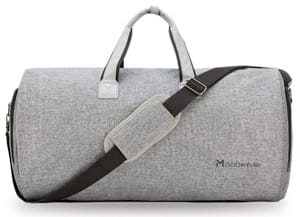 これが旅行に最適なガーメントバッグの 1 つであることに異論の余地はありません。吊り下げガーメントバッグとして使用する場合、バッグのサイズは 37.5 インチ x 20.8 インチで、衣類を収納できるスペースのほか、ネクタイや小型電子機器などを収納できる内ポケットも付いています。ダッフルとして使用する場合、容量は 45 リットルで、サイズは 22.8 インチ x 11 インチ x 11.8 インチです。パスポートや鍵などを収納できるサイドポケットが 1 つと、ビジネスシューズとトラベルシューズの両方に対応するように設計されたポケットが 1 つあります。取り外し可能なショルダーストラップとバックフラップのデザインにより、荷物に取り付けることができるため、Modoker Convertible Garment Bag は入手可能なガーメントバッグの中で最も評価の高いものの 1 つとなっており、さらに便利です。