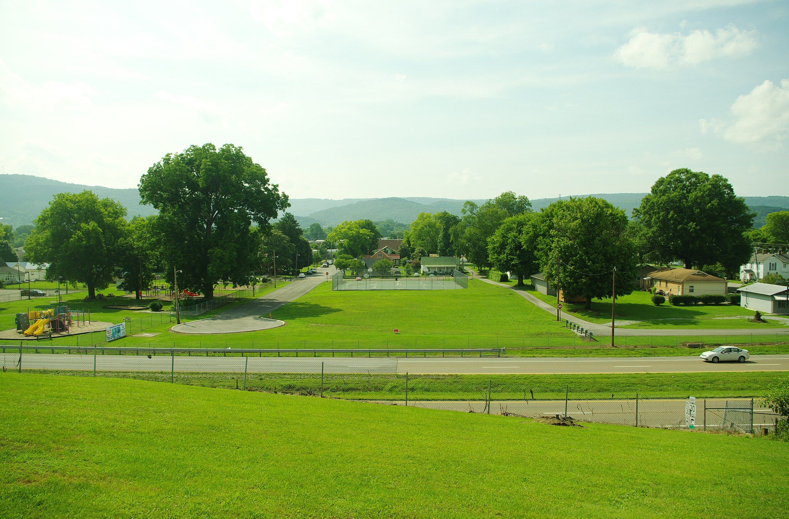 テネシー州デイトン、古いシーダーヒルホテルの建物の芝生から見た
