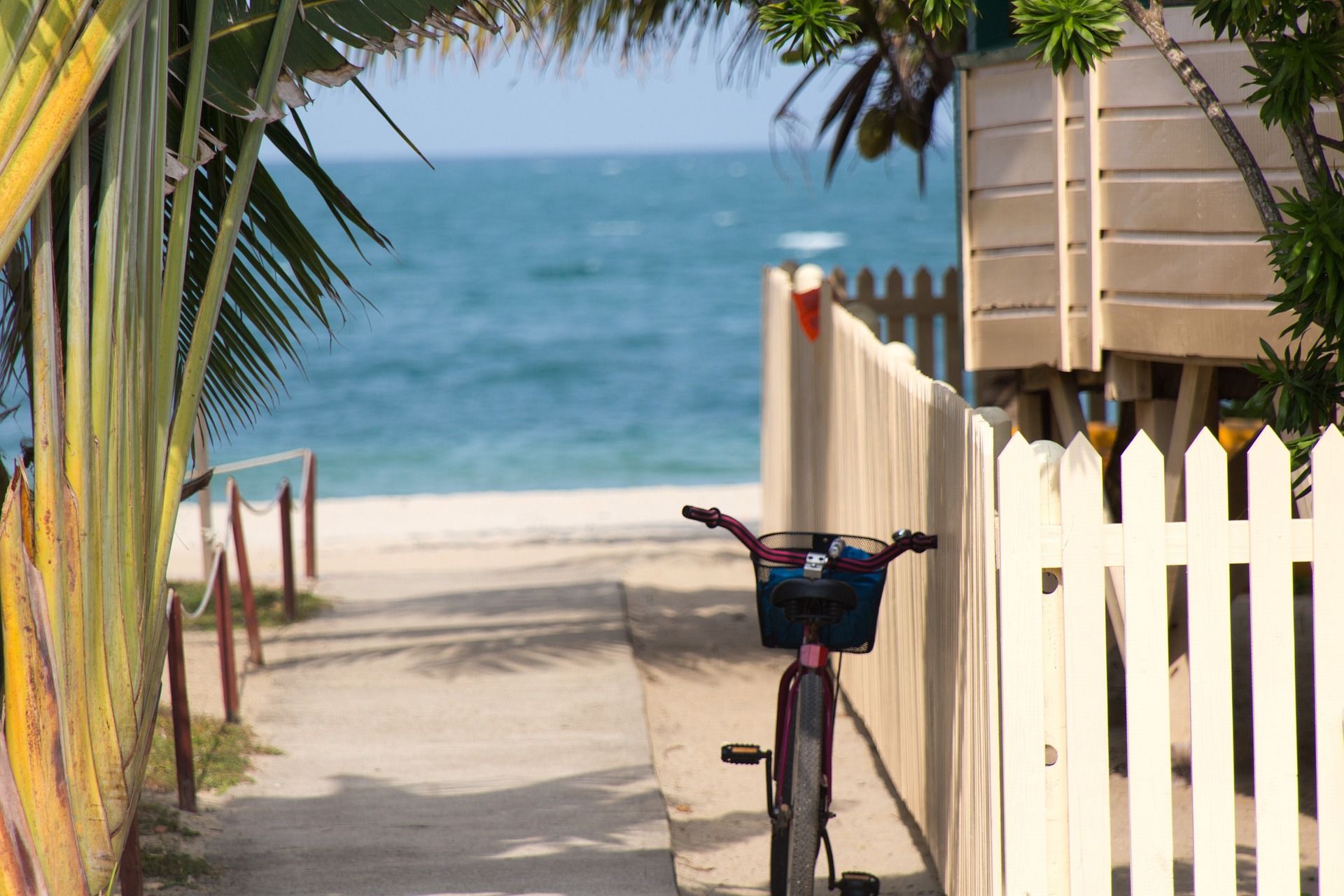 フロリダの鍵のビーチフロントリゾートに駐車されている自転車