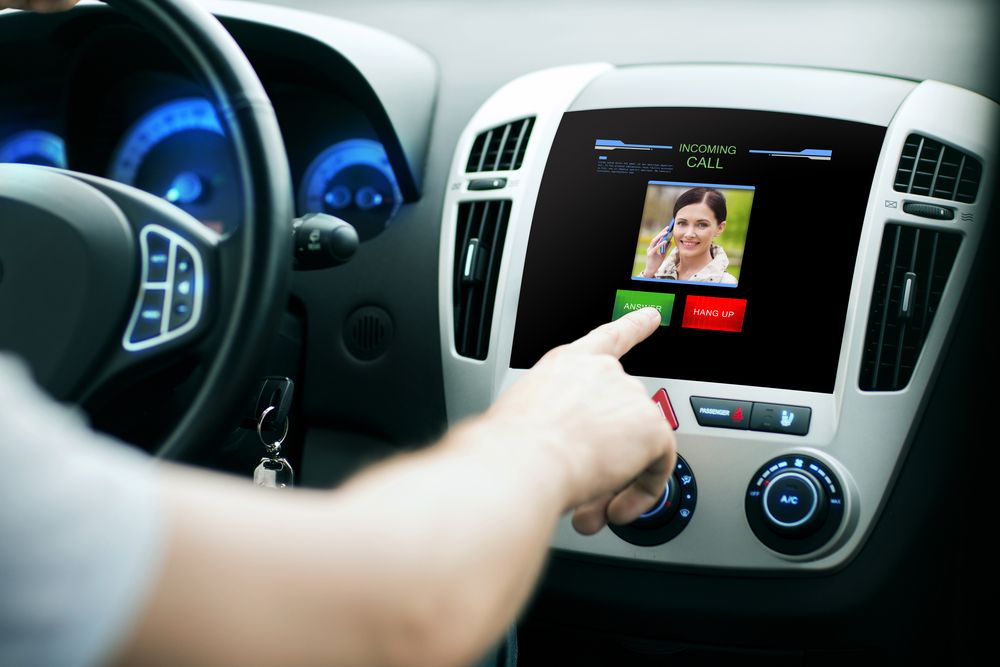 車でビデオ通話をしている人