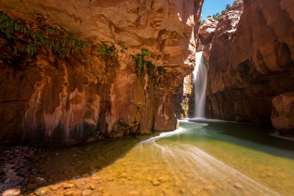 これらの代替の滝は、ハバスフォールズが行う明るい青い海を紹介しませんが、それらはまだ非常に風光明媚で、カラフルな赤い岩で補完されています。
