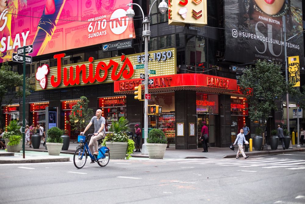 タイムズスクエアには多くの高級店やチェーンレストランがあり、値段が高すぎて観光客で賑わっています。ジュニアのチーズケーキもその一つです!ほとんどの人は、ニューヨークで最高のチーズケーキを提供していることに同意するでしょうが、24ドルのチーズケーキを買うために、すでに混雑しているタイムズスクエアで1〜2時間長蛇の列に並ぶ価値はほとんどありません。