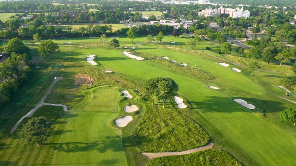ニューヨーク州ガーデンシティ・ロングアイランド上のゴルフコースの空撮
