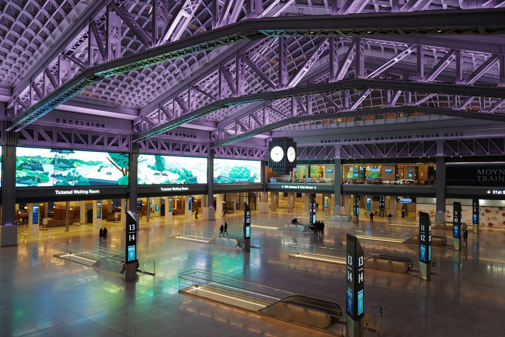 米国ニューヨーク市マンハッタンのミッドタウンにあるニューヨークのペン駅を拡張するモイニハン トレイン ホールを新たにオープン