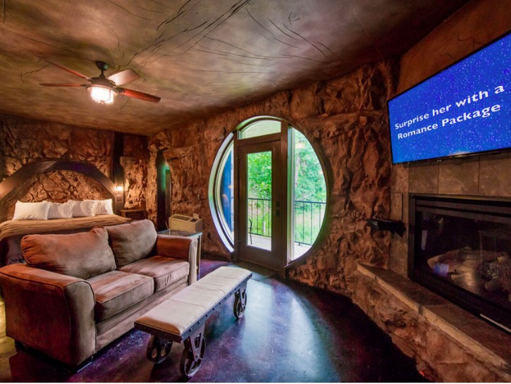 ワイルドウッド インティキ・ハットからスイス・ファミリー・ロビンソンズ・ツリーハウスまで、いくつかのテーマ別の部屋を備えています。また、北極、ケンタッキー、アリゾナ、ニューメキシコ、ユタキャニオンなど、国内のさまざまな地域や極地の洞窟のように装飾された 5 つの洞窟部屋もあります。各部屋には窓がなく、鍾乳石や石筍に囲まれたキングサイズベッドとホットタブが備わっています。冷蔵庫、フルサイズのバスルーム、HD テレビなどの設備も整っています。
