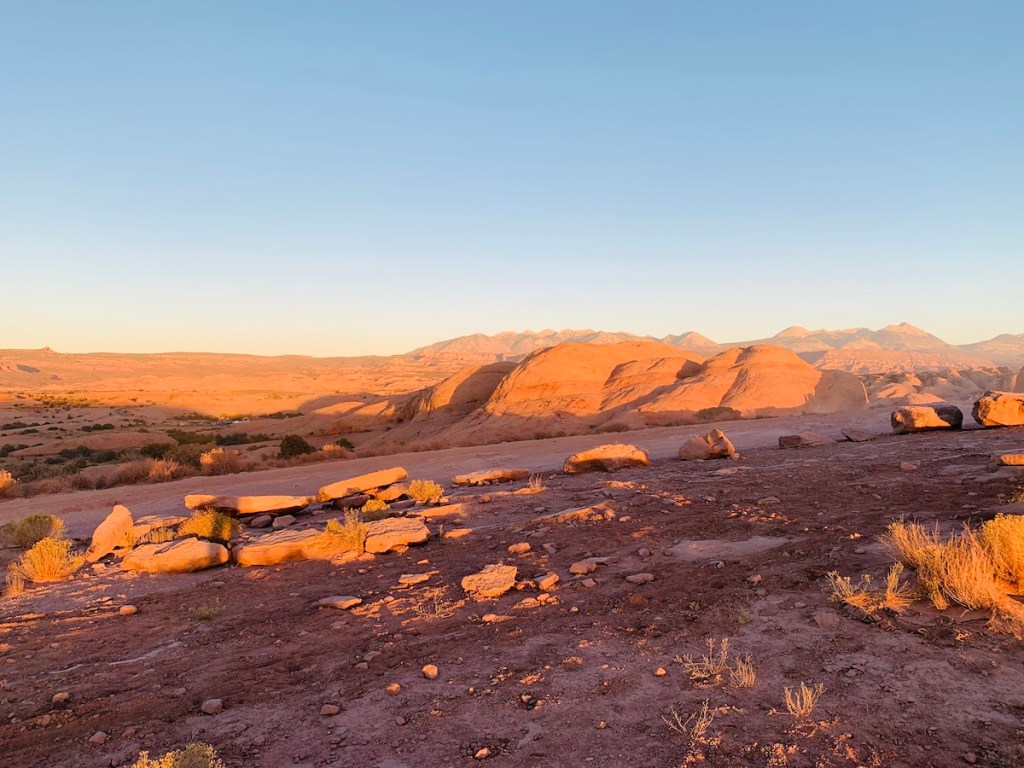 頂上の高台から眺める公園の荒々しい風景の美しさは驚くべきものです。どの方向を向いても、キャニオンランズ国立公園、ラ サル山脈、コロラド川の景色を望むパノラマは息をのむほど美しいです。