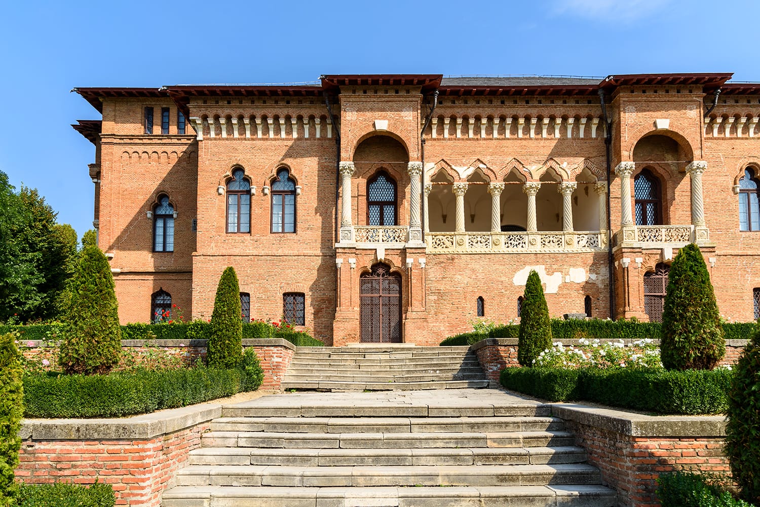 ルーマニアの最高の観光スポットの 1 つであるペレス城は、ぜひ訪れてください。ブチェジ山脈の麓、シナイアの小さな村にあるこの城は、まるでおとぎ話から飛び出してきたかのようです。この城は、ルーマニア国王カロル 1 世の夏の離宮として 1883 年までに建てられ、現在は博物館になっています。訪問者は城の敷地内を歩き、テラスガーデンを眺めながら、城の古典的な景色を眺めることができます。城の内部は、両方の階または 1 階だけを見学して、外観と同じくらい精巧な内部を見ることができます。インド風の音楽室からトルコ サロンに至るまで、城内の各部屋にはテーマがあり、歴史的な映画館もあります。