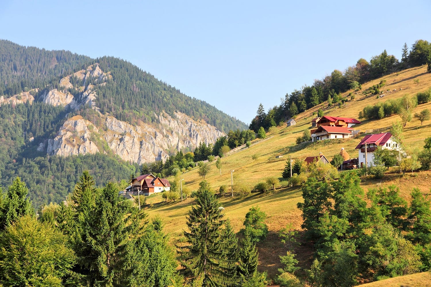 トランシルヴァニアの素晴らしい自然の中で 1 日過ごすなら、ピアトラ クライウルイ国立公園に勝るものはありません。カルパティア山脈南部にあるこの素晴らしい保護された屋外エリアを訪れると、見どころがたくさんあります。日帰り旅行でできる最も簡単なアクティビティはおそらくハイキングですが、特定のエリアでは乗馬やロック クライミングを楽しむこともできます。この国立公園は、森林や渓谷から高山の尾根や氷河湖まで、あらゆる種類の景観を誇っています。最も簡単なハイキング コースの 1 つは、森に覆われた峡谷を抜けますが、より長いハイキング コースではより高みに到達し、公園の周囲にある伝統的な村のいくつかを訪れることもできます。