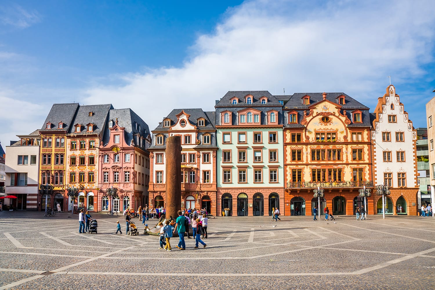 フランクフルトからもう 1 つの短い旅行には、歴史都市マインツがあります。ライン川沿いに位置するマインツには、地域の主要な文化の中心地となるのに貢献してきた長い歴史があります。第二次世界大戦中の爆撃で街の大部分が破壊されましたが、旧市街は生き残ったので、ここが訪問の出発点として最適です。ここには、市場広場、木骨造りの家々、そして壮大なロマネスク様式のマインツ大聖堂があります。