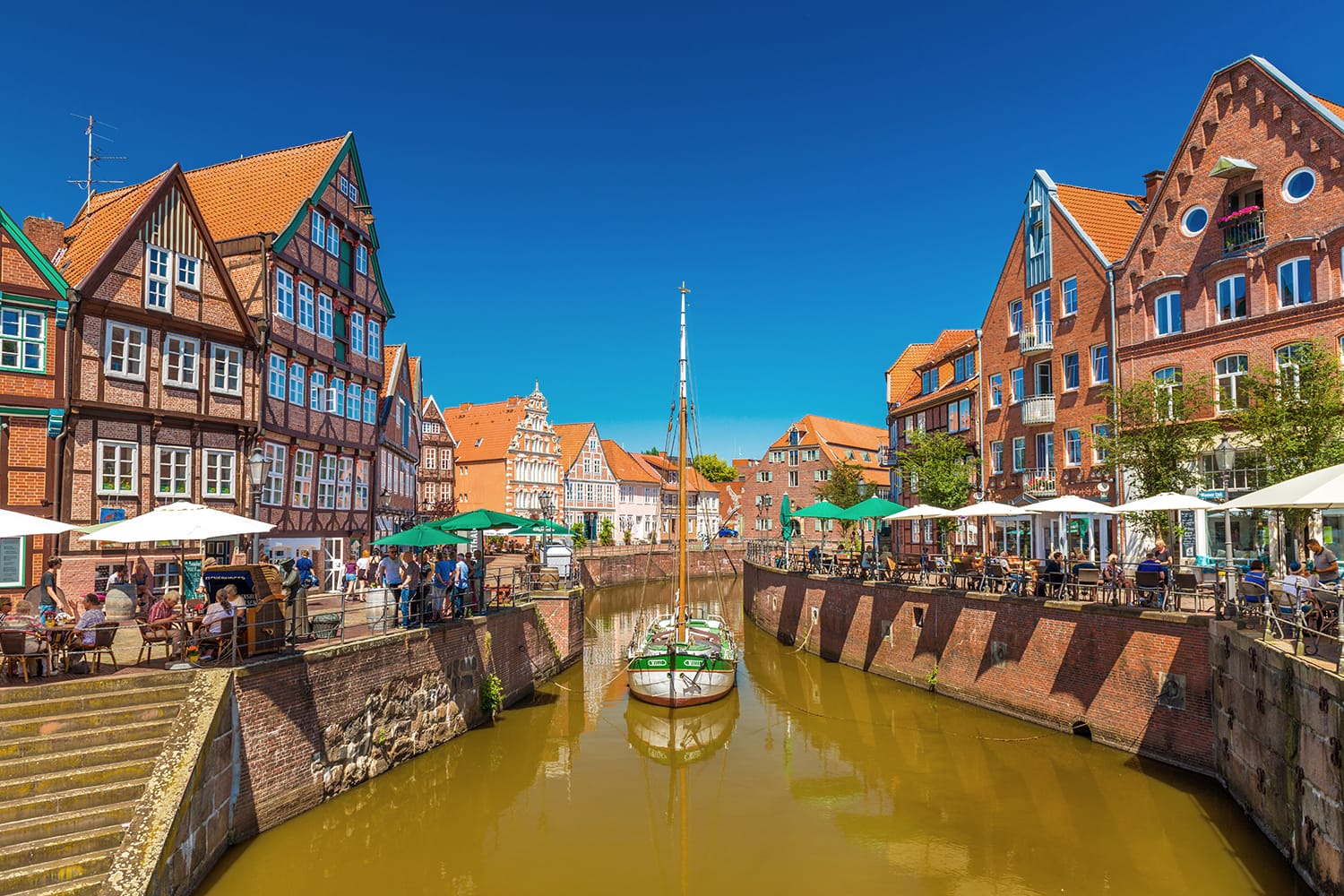 ハンブルクからすぐの小さな都市シュターデも、ハンザ同盟の歴史を持つもう 1 つの目的地です。ハンブルクからエルベ川のすぐ下流に位置するシュターデの観光スポットのほとんどは、ハンザ同盟、または三十年戦争後のスウェーデンによる占領に関連しています。訪問は、街の歴史的な港であるハンゼハーフェンへの散歩から始まります。そこには、シュヴェーデンシュパイヒャー博物館があります。シュターデの長い貿易の歴史を示す博物館で、古いスウェーデンの倉庫の中にあります。近くには、保存状態の良い 17 世紀のスウェーデン時代の建物を利用した美術館、スタッド クンストハウスがあり、さまざまな特別展が開催されています。旧市街の他の場所には、シュターデをドイツの木骨道路の観光ルートに載せている美しい木骨造りの家がたくさんあります。