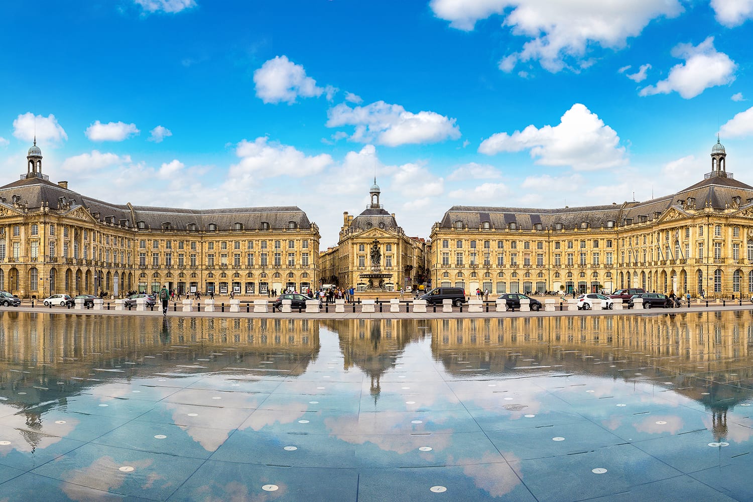 見事な 18 世紀の建築物を特徴とするこの象徴的な建物は、完成までに 20 年かかりました。ボルドーはルイ 15 世の最初の建築家、ジャック ガブリエルに要塞都市を開放する王宮広場の建設を依頼しました。現在、観光客はこの有名な建物の前で写真を撮ることができます。広場の中央には、「三美神の噴水」と呼ばれる大きな噴水があり、ギリシャの神ゼウスの 3 人の娘アグラエ、エウフロシュネ、タリアを表しています。道路の反対側、ブルス広場の向かいには、多くの観光客が街の象徴的な写真を撮るためにそこに立って好む大きな浅い反射プールがあります。