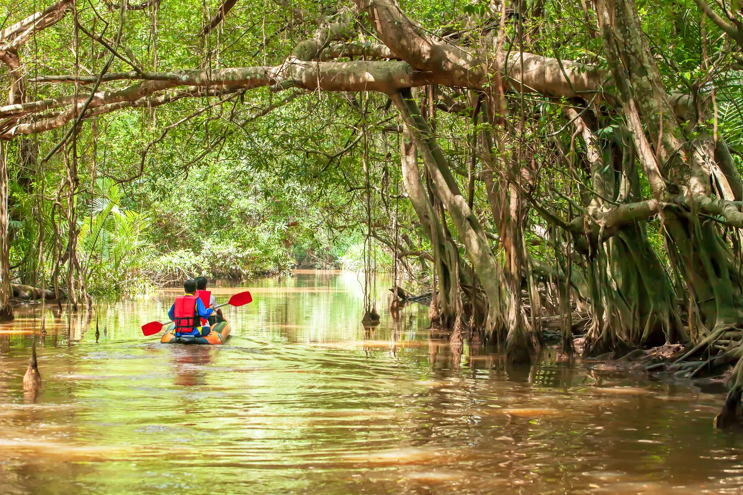リトルアマゾン川は、ガイド付きカヌーツアーのために毎日午前9時から午後5時まで営業しています。カヌー旅行は約1時間続き、小さな子供と一緒に旅行する人には理想的です。訪問者は、モニタートカゲ、長い尾のマカク、カエル、カワセミ、サギ、緑のヘビ、さらにはパイソンなどのあらゆる種類の生き物を見ることを期待できます(運が良ければ)!