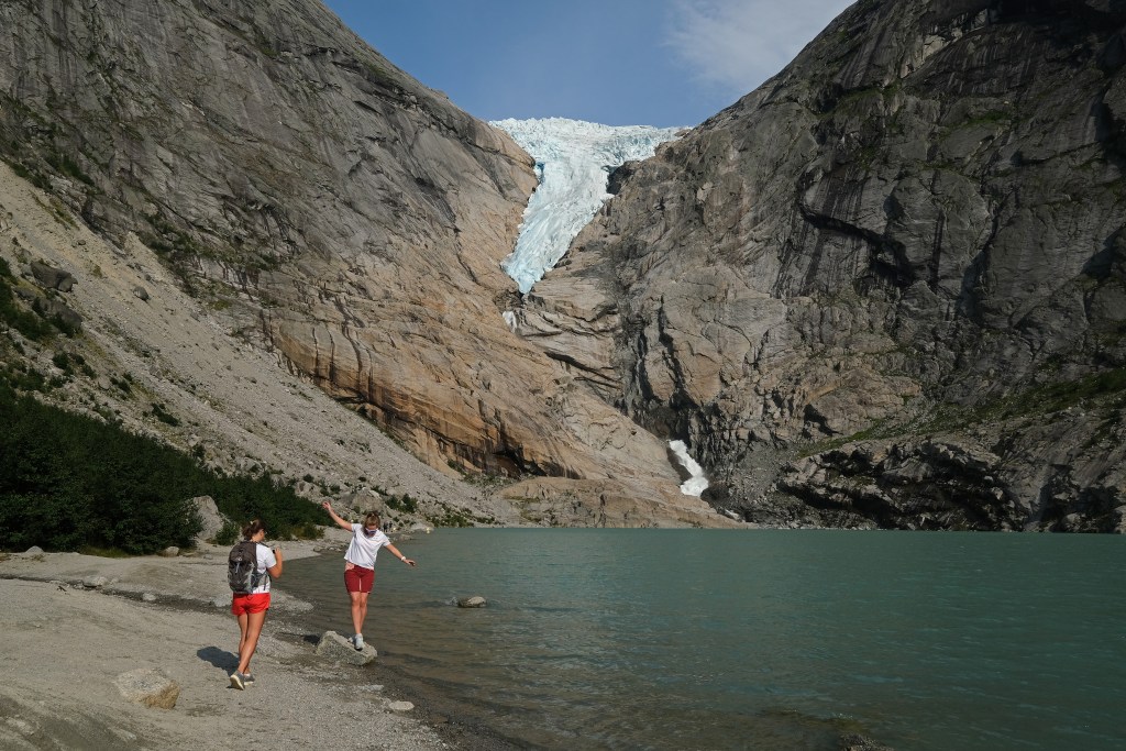 2000年以来、Briksdal Glacierは縮小しています。つまり、見るべきものが少なくなります。そのサイズの縮小を考えると、かつて氷河をピットしていた明るい青い色合いはもはや活気がありません。