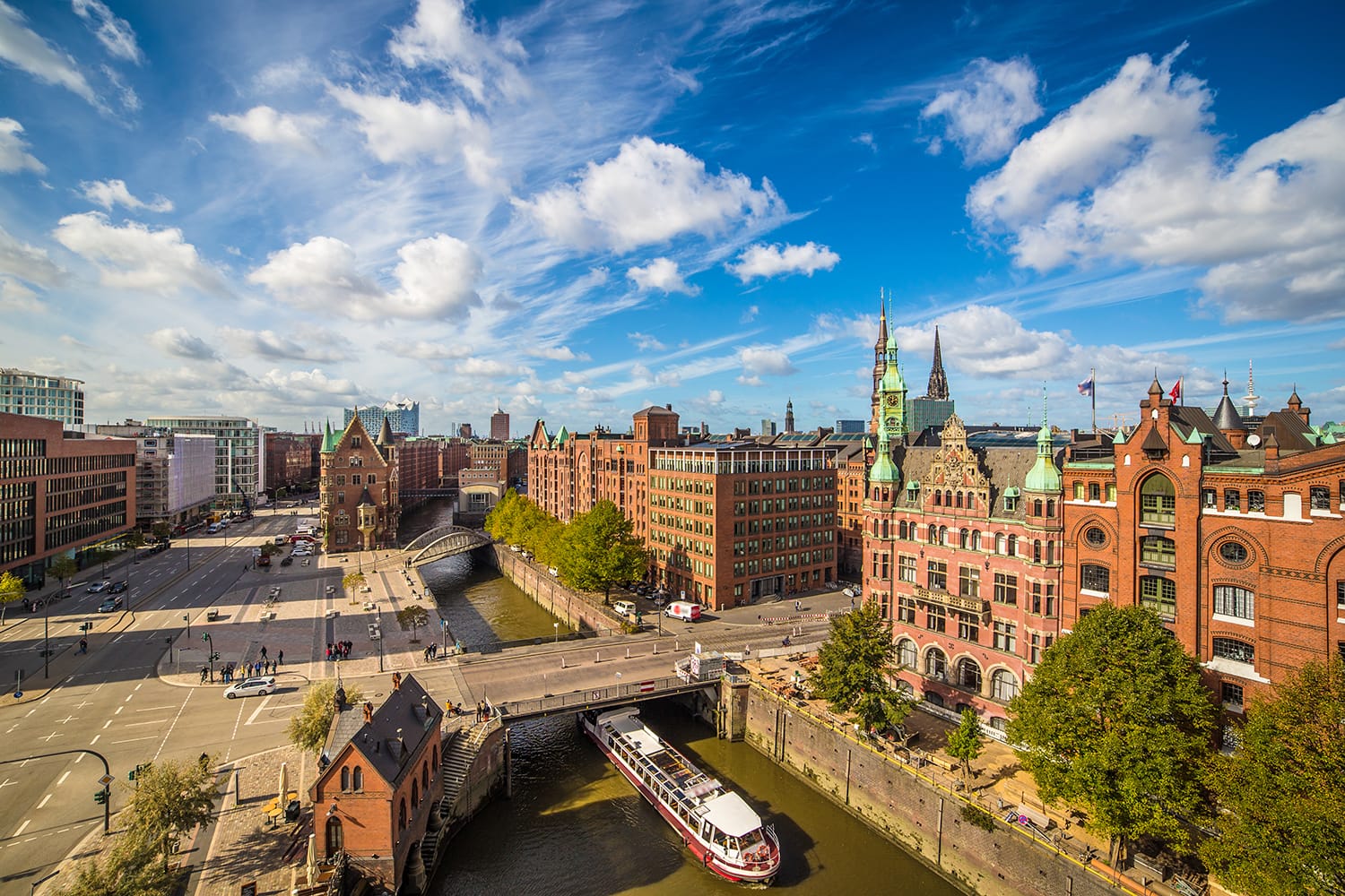 ハンブルクで最も絵のように美しい地域を求めるなら、型破りに美しいシュパイヒャーシュタット地区に向かいましょう。ハンブルクの倉庫街に直行するのは奇妙に思えるかもしれませんが、一度そこを探索し始めると、その理由がすぐに明らかになります。この地域のどの橋からも、狭い運河の上に延々とそびえ立つレンガ造りの高い倉庫の眺めが楽しめます。シュパイヒャーシュタットの魅力を理解するには、百聞は一見に如かずです。