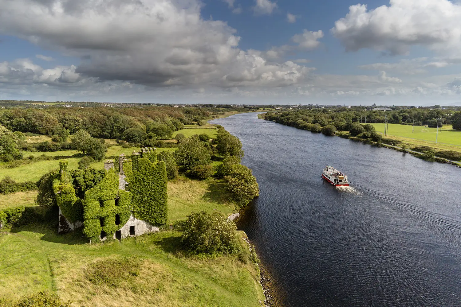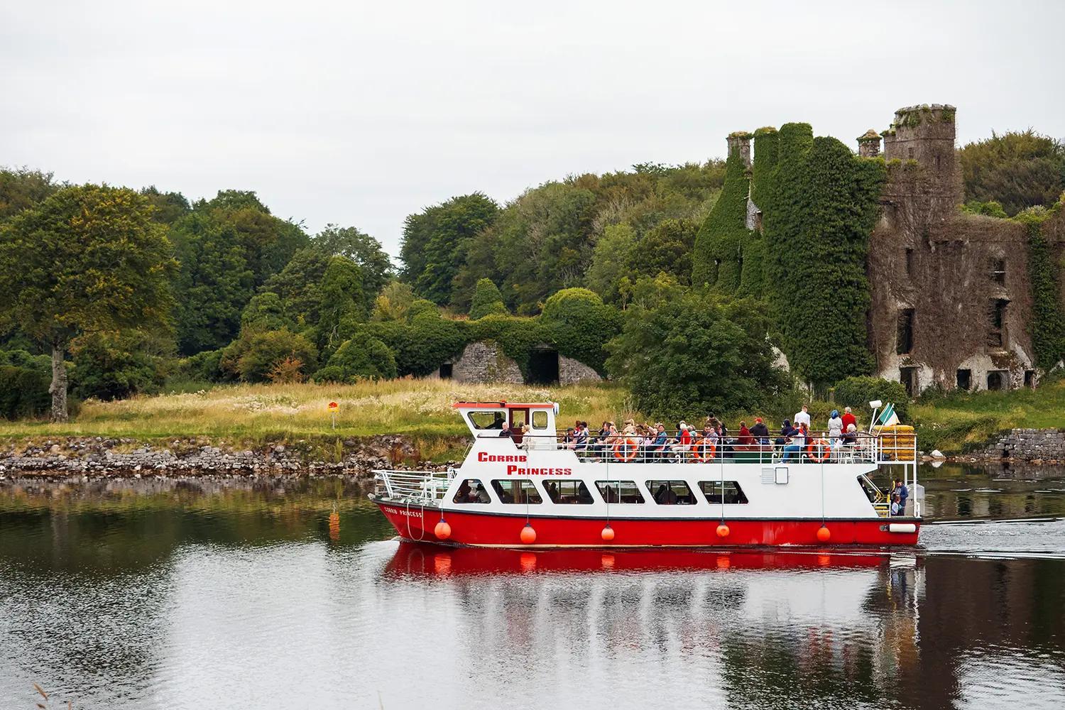 クルーズは、ゴールウェイの中心部から川のコリブを登るレジャーボートに乗って訪問者を連れて行き、田園地帯のアトラクションを通り過ぎますメンロ城、ゴールウェイ大聖堂、そしてlough corrib(アイルランド最大の湖)。訪問者は、オンボードバーからさわやかなパイントやアイルランドのコーヒーを楽しむことができ、トップデッキの屋外を楽しんだり、温水や屋根付きのサルーンに座ったりすることができます。ボートのサルーンエリアには車椅子にアクセスできますが、トイレと2階のレベルはありません。