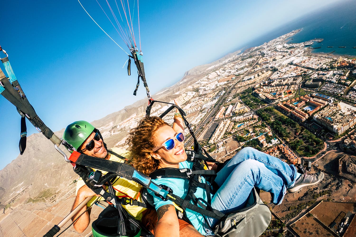 これタンデムパラグライダー飛行テネリフェ島南部の高さ 700 メートルの上空を緩やかなドライブに連れて行きます。冒険はコスタ アデヘから始まります。パラグライダー サイトとホテル間の往復送迎がチケットに含まれています。到着したら、インストラクターに会い、短い鳥になるためのトレーニングと準備を受けます。