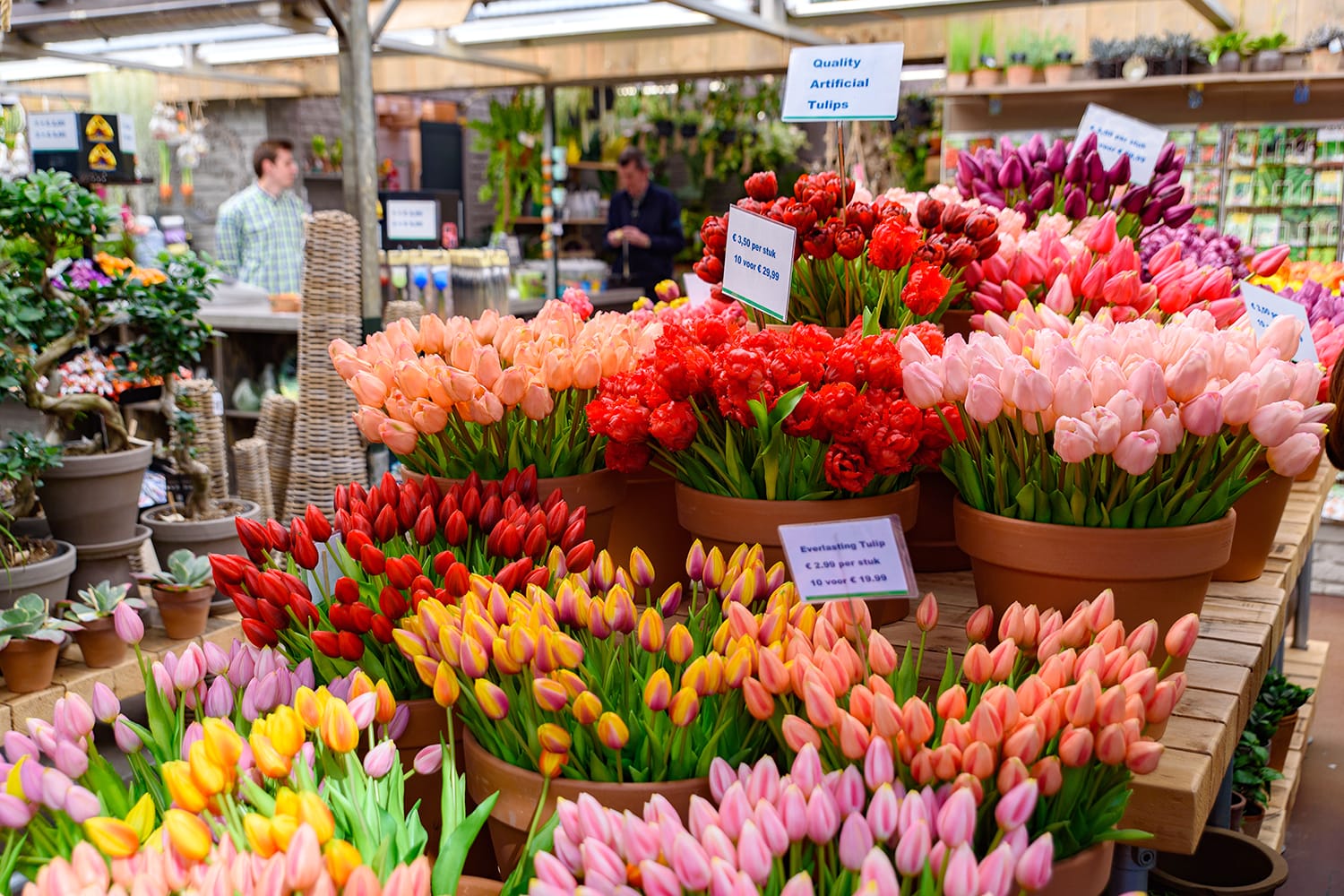 南に向かうと、次の目的地は楽しいBloemenmarktです。オランダは花と運河で知られており、この浮遊フラワーマーケットは2つを組み合わせています。市場は、1862年以来、花屋がはしけで取引されている運河であるシンズにあります。バージは現在、ミニの温室に花の鮮やかなディスプレイがあり、恒久的な備品です。