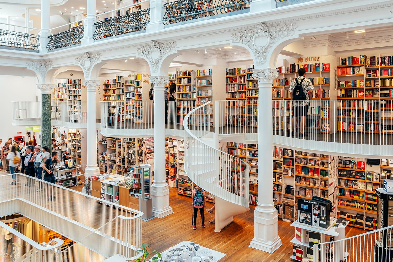 あれこれ考えながら、カルトゥレシュティ カルーセル書店への道を探しましょう。あまり本を読まない人でも、この書店の宮殿のような内装は目を見張るものがあります。現在では世界で最も美しい書店の 1 つとなっているため、これが 2007 年に廃墟になった建物だったとは信じられないかもしれません。華やかな曲線を描いたバルコニーが広く開かれた中央玄関を見下ろしており、東洋のパリというブカレストの称号を裏付けるもう 1 つの壮大な景観となっています。