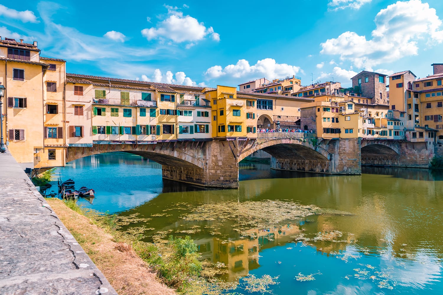 あなたはアルノを見たことがありますが、あなたはまだフィレンツェで最も有名な橋であるポンテヴェッキオを訪れていません。この14世紀の橋を非常に特別なものにしているのは、橋が中世に行ったように、まだ店がまだあることです。また、第二次世界大戦を生き延びたフィレンツェの唯一の橋であるという悲しい名誉もあります。