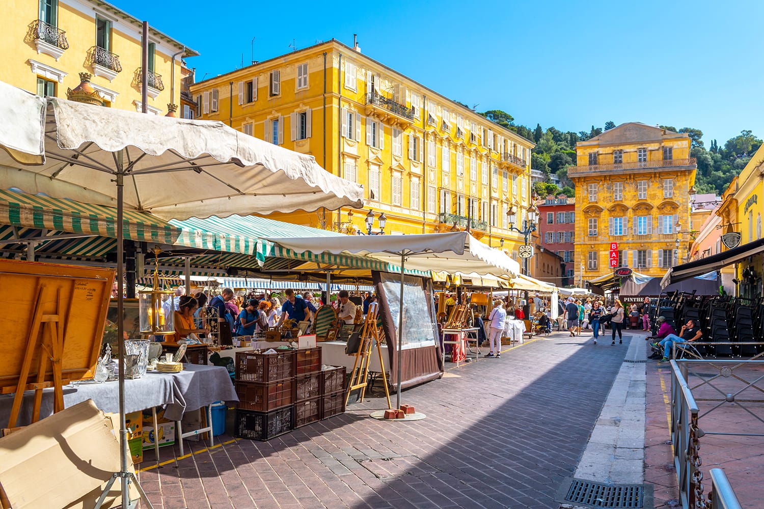 訪問は、ニースで最も古いエリアである旧市街をリラックスして散策することから始まります。ヴュー ニースまたはヴィエイユ ヴィルの両方で知られる旧市街には、数多くのレストランや店舗はもちろん、カラフルな高層長屋が並ぶ狭い通りがたくさんあります。
