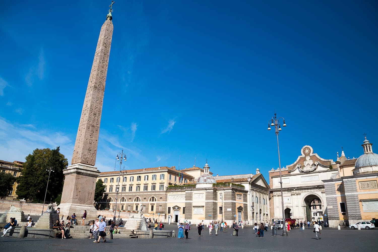 まず、中央に誇らしげに立っている古代エジプトのオベリスクがあります。そして、広場の周りには複数の教会があり、特にサンタ マリア デル ポポロ、カラヴァッジョの2つの芸術作品を収蔵しています。最後になりましたが、ピンチョテラス、テラスの集合体であり、眼下に広がる広場の素晴らしい景色を眺めることができます。