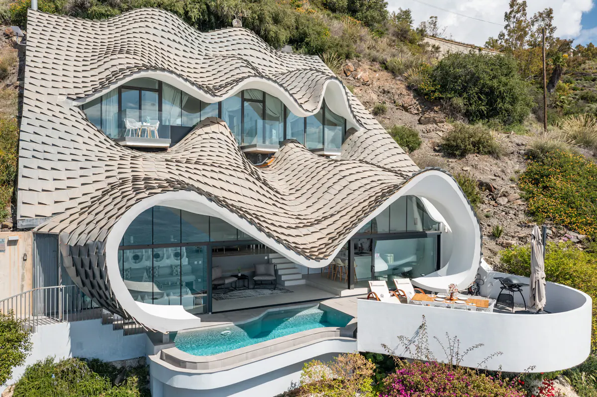 見事な建築デザイン、一流のアメニティ、ドラマチックな崖沿いのロケーションを備えたこの 3 ベッドルーム ヴィラは、スペインで最もクールな Airbnb にランクされています。 Netflix の「世界で最も素晴らしい家」でも紹介されたこの宿泊施設は、建築、デザイン、海を愛する人にとって夢のような滞在です。インフィニティ プールで泳いだり、ラウンジ ベッドで日光浴したり、地中海の素晴らしい景色を眺めながら屋外で食事をしたりして、一日をお過ごしください。内部のオープンプランのリビングエリアには、波のような丸い天井と、美しいグラナダの海岸線を囲む壁一面の窓が特徴です。階下の窓壁がスライドして開き、海風を感じられる開放的な空間が生まれます。その他の注目すべき設備には、レインフォール シャワー、深めの浴槽、洗濯機と乾燥機など、忘れられない滞在に必要なものがすべて揃っています。