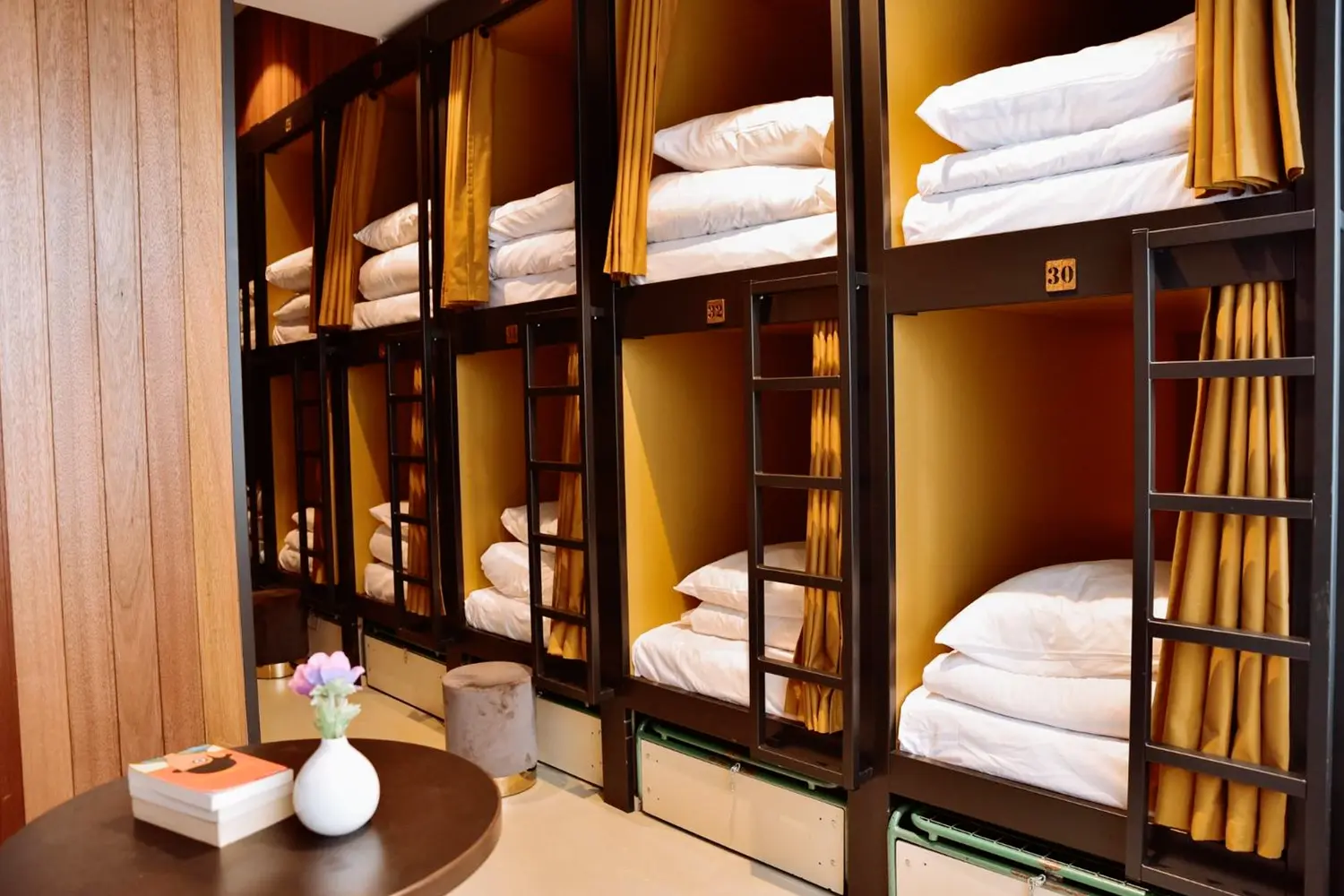 ホステルには 18 歳から 40 歳までの旅行者のみが宿泊でき、個室はありません。 20名様の男女混合ドミトリーまたは12名様の女性専用ドミトリーのベッドを予約することができます。男女共用ドミトリーのベッドにはプライバシーカーテン、USBプラグ、コンセント、読書灯が付いており、女性専用ドミトリーのベッドにはロッカーと読書灯が付いています。