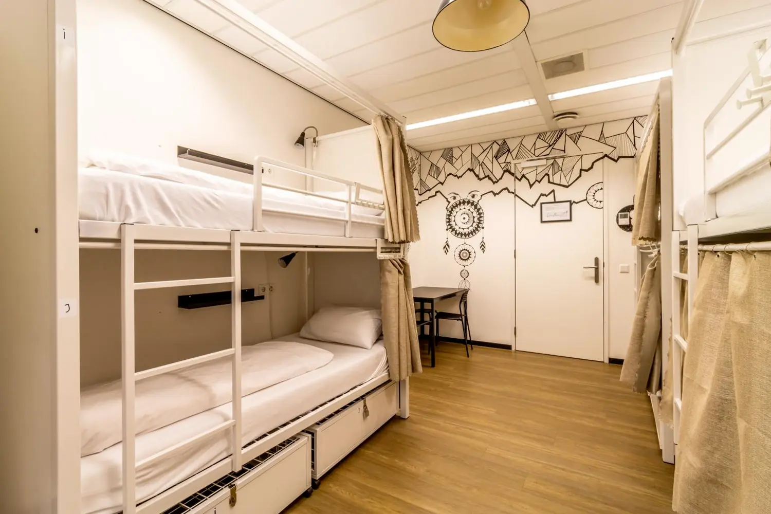 Hostelle には個室はありませんが、ベッドが 4 台から 12 台まであるドミトリールームのベッドを予約できます。各部屋には独自のテーマがあり、各ベッドにはプライバシーカーテン、ロッカー、照明、コンセントが付いています。 Hostelle はアムステルダムセ ポールト ショッピング モールの隣に位置し、地下鉄と鉄道のアムステルダム バイルマー アリーナ駅から徒歩約 5 分で、アムステルダム セントラムまでは 20 分以内でアクセスできます。