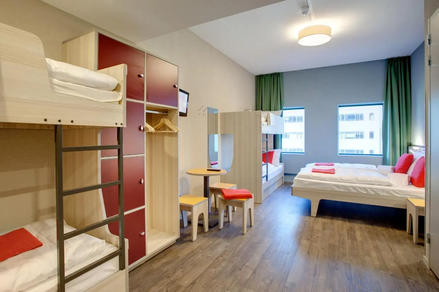 ハンス ブリンカーのドミトリーの部屋を予約するには、40 歳未満である必要があります。ドミトリーは、男女共用または女性専用の部屋に 4 台、6 台、または 8 台のベッドを備えた構成で提供されます。各ドミトリーのベッドの下には、鍵付きの大きな引き出しが付いています。専用バスルーム付きの個室も予約可能で、最大6名まで宿泊可能です。