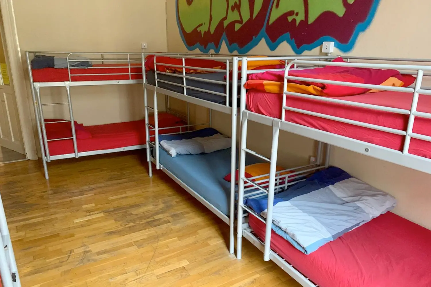 旅行者は、混合環境で6、8、または10ベッドのある寮の部屋から選択できます。すべての寮には、それぞれにロック可能な引き出し、ブラックアウトカーテン、読書ライト、小さな棚、2つの電気コンセントが付いたカスタムメイドの二段ベッドが装備されています。