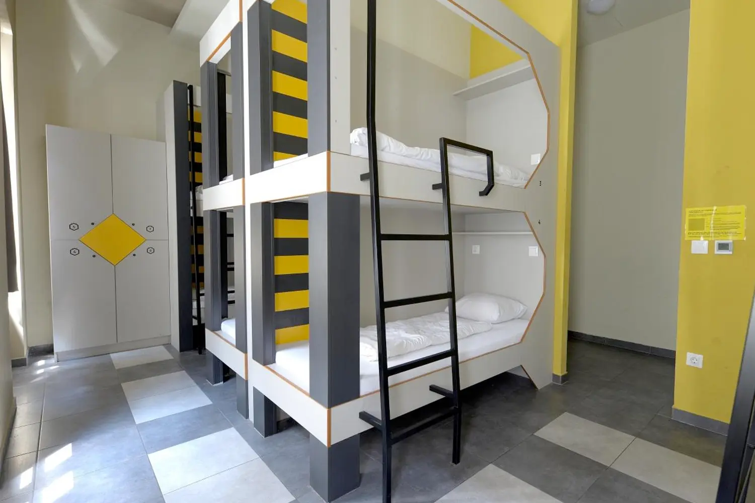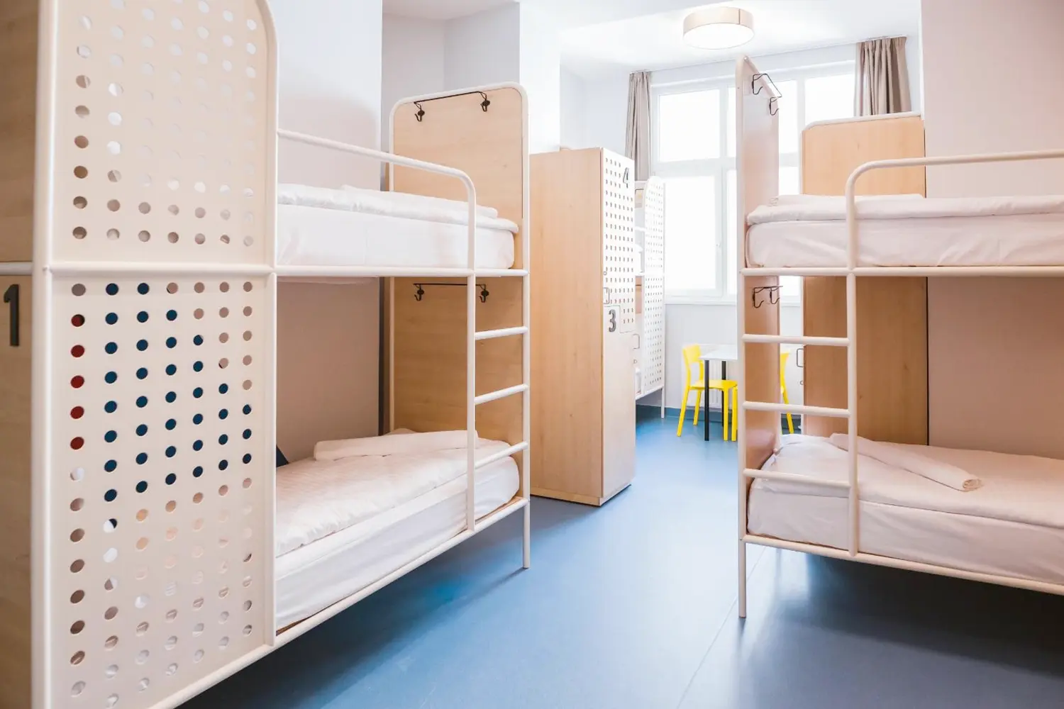 旅行者は、基本的または標準的な8人の混合寮の部屋でベッドを予約できます。標準的な寮には、それぞれに電気コンセントが付いた金属製の二段ベッドが装備されています。基本的な客室には、ロフトスタイルの設定にシングルベッドと二段ベッドが混在しており、各ベッドには電気コンセントも装備されています。