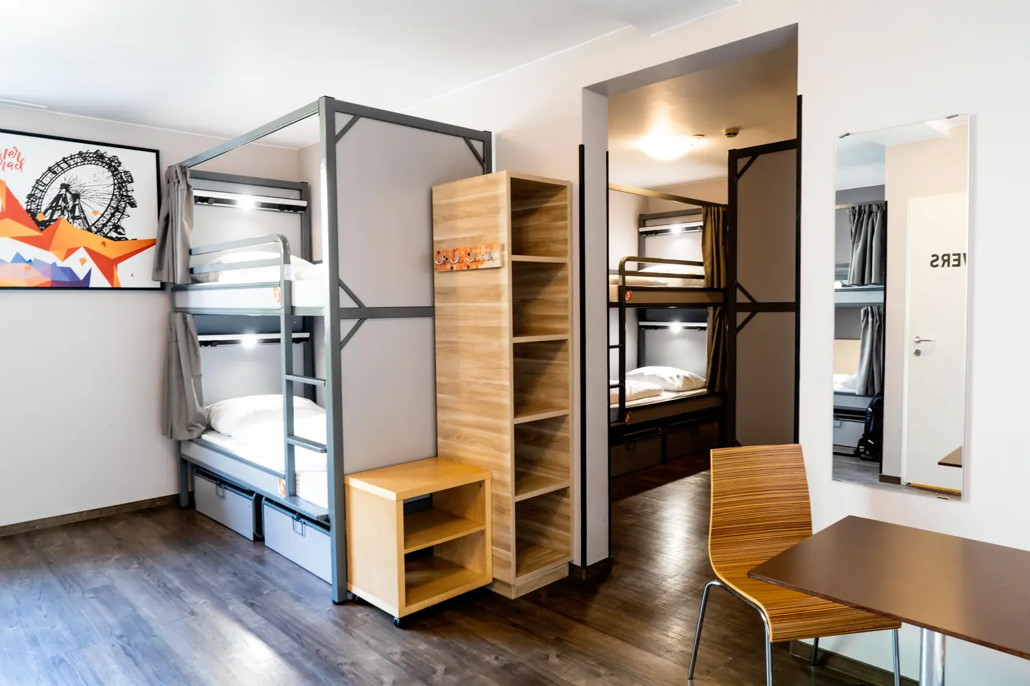 あなたは眠りが浅い方で、よりプライベートなドミトリールームを備えた落ち着いたホステルをお探しですか?それならStadtaffeがぴったりの場所かもしれません。このシックなホステルは、男女共用または女性専用の、4 ~ 12 台のベッドを備えた広々としたモダンなドミトリーを提供しています。各ベッドはポッドのようなデザインで、遮光プライバシー カーテン、施錠可能な引き出しまたはロッカー、パーソナル ライト、コンセントが付いています。