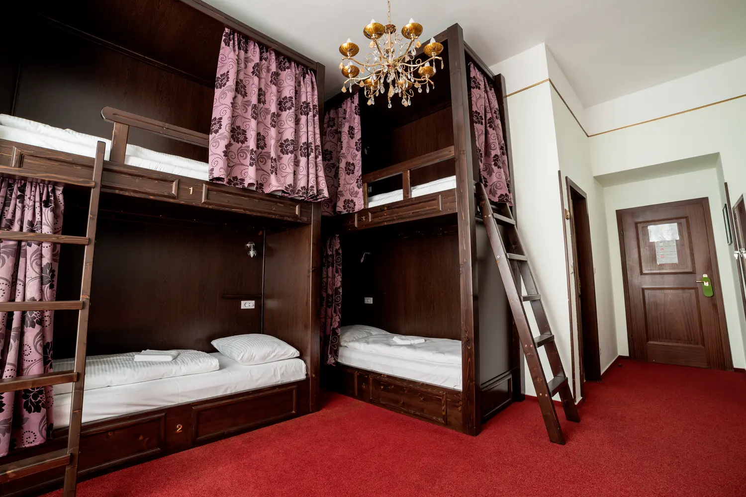 個室とドミトリールームの両方が用意されており、男女混合または女性専用の設定で 4 台、6 台、または 8 台のベッドを備えたはしごが用意されています。すべてのドミトリールームには専用バスルームが付いており、各ベッドにはロッカー、読書灯、電源プラグが付いています。