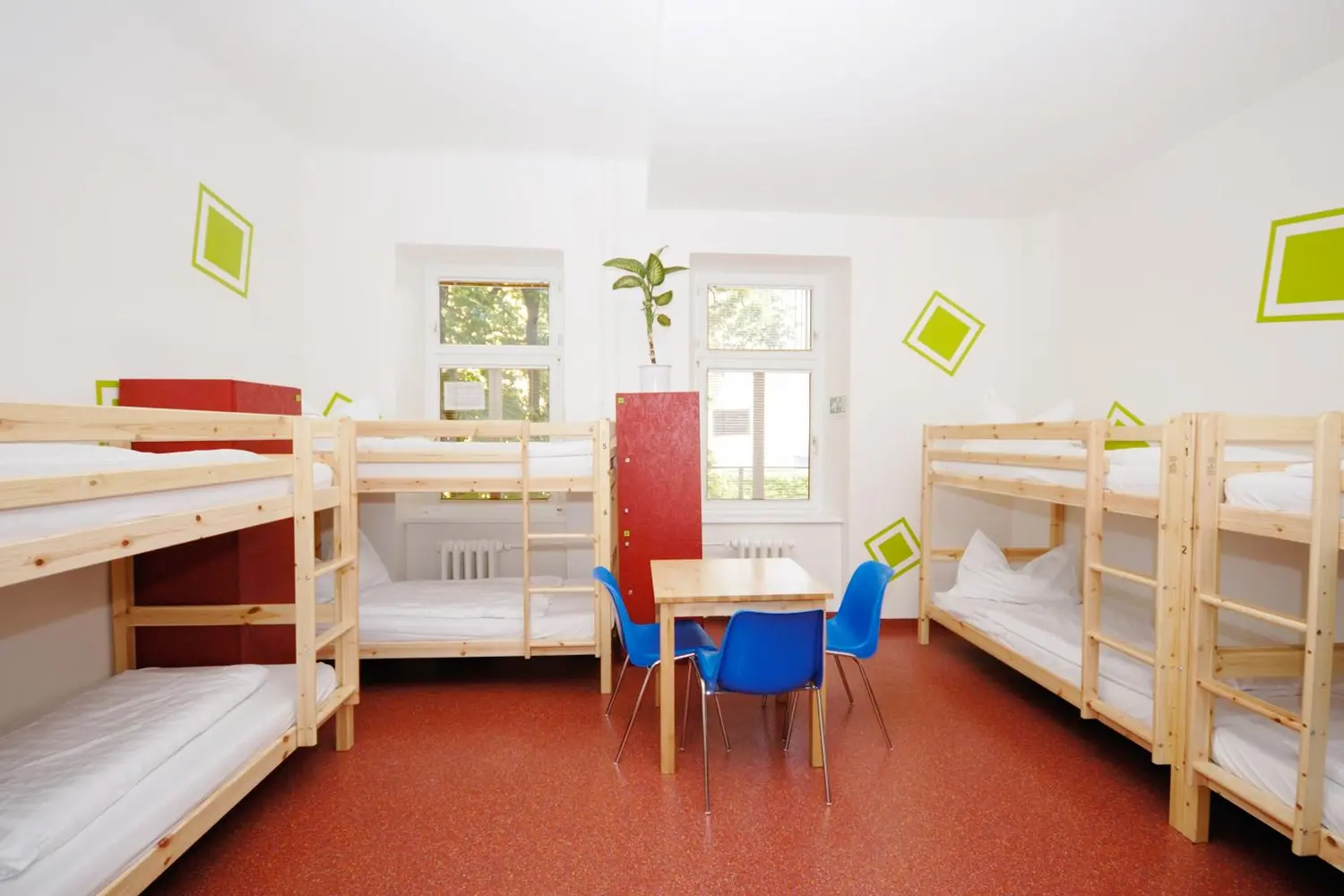 ウィーンにあるこのホステルには個室があり、あらゆるグループの人数に合わせた豊富な客室をご用意しています。プライベートルームはシングルからベッド 6 台まであり、全室に専用バスルームが付いています。より伝統的なバックパッカールートを利用する人は、4 人、6 人、または 8 人用の男女混合ドミトリーまたは女性専用ドミトリーのベッドを予約できます。ドミトリーの各ベッドには、プライバシー カーテン、ロッカー、個人用ライト、コンセントが備わっています。