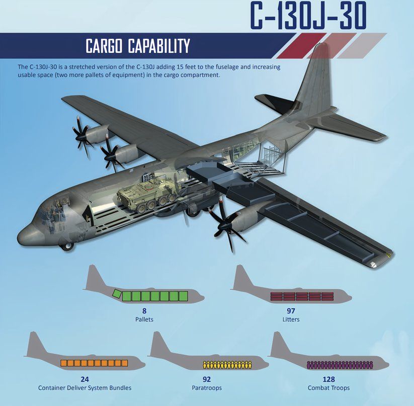 C-130 については、ロッキード・マーティンは、「戦闘部隊を中距離で空輸し、短くて厳しい飛行場に輸送できる真の軍用輸送機」に対する米空軍のニーズの産物です。
