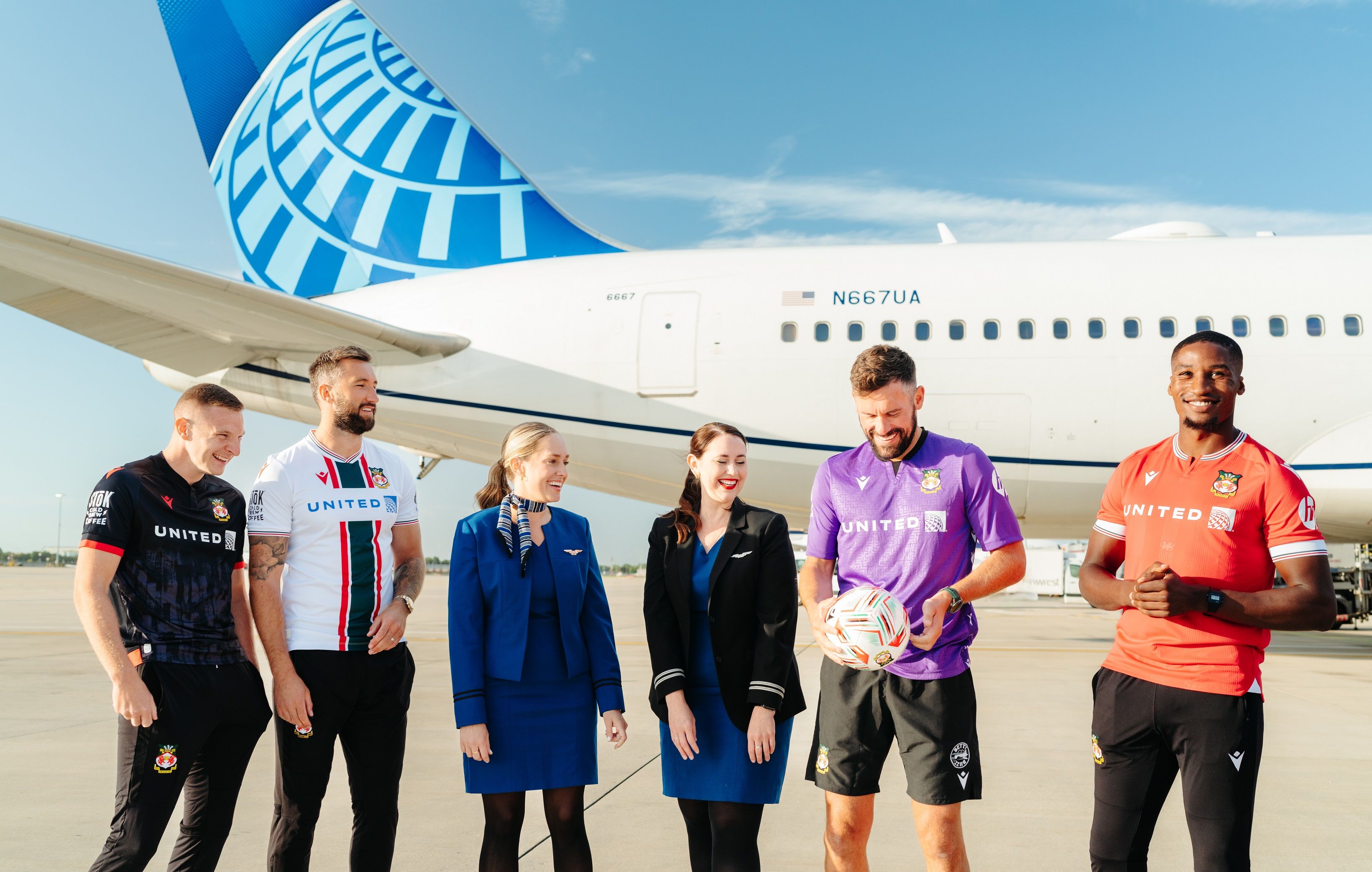 シカゴに拠点を置くユナイテッド航空は、俳優のライアン・レイノルズとロブ・マッケルヘニーのおかげで、ウェールズのサッカーチームであるウェールズハム協会のフットボールクラブとのユニークなパートナーシップに参加しました。昨年チームの所有者になったデュオは、ユナイテッドが選手のプライマリシャツスポンサーになると発表しました。チームのオンラインクラブショップで売り切れたファンの小売シャツの多くが、スポンサーシップが成功することが証明されました。デザインには以下が含まれます。