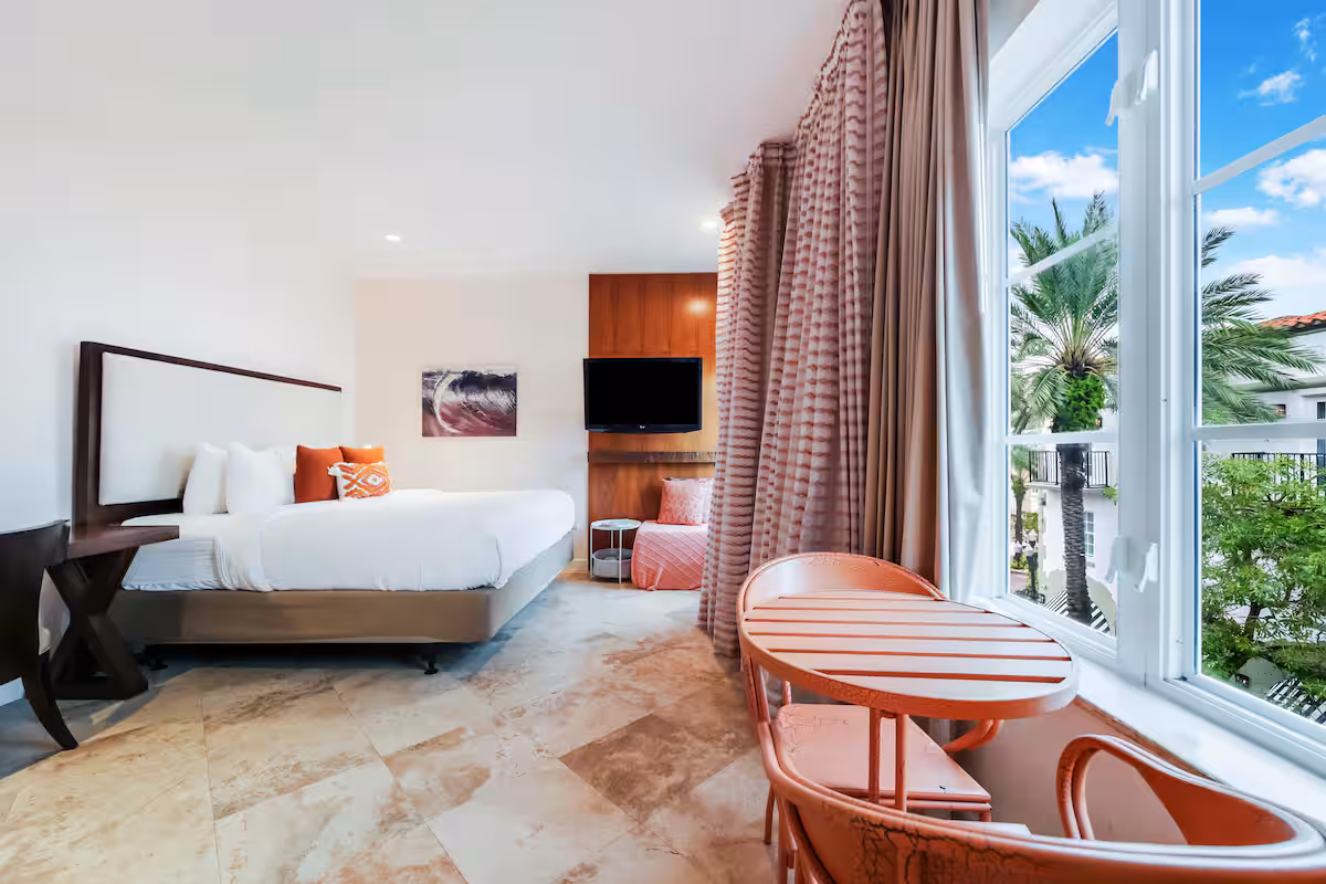 スペイン風の建物も見どころです。パステル ピンクの壁と中庭が、マイアミの象徴的なスタイリッシュな雰囲気へと誘います。