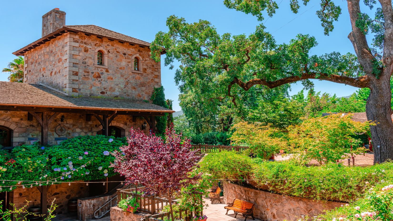米国カリフォルニア州セントヘレナ、ナパバレーにある多くのワイナリーの1つ、ホワイト・レーンのサットゥイ・ワイナリークレジット: Shutterstock