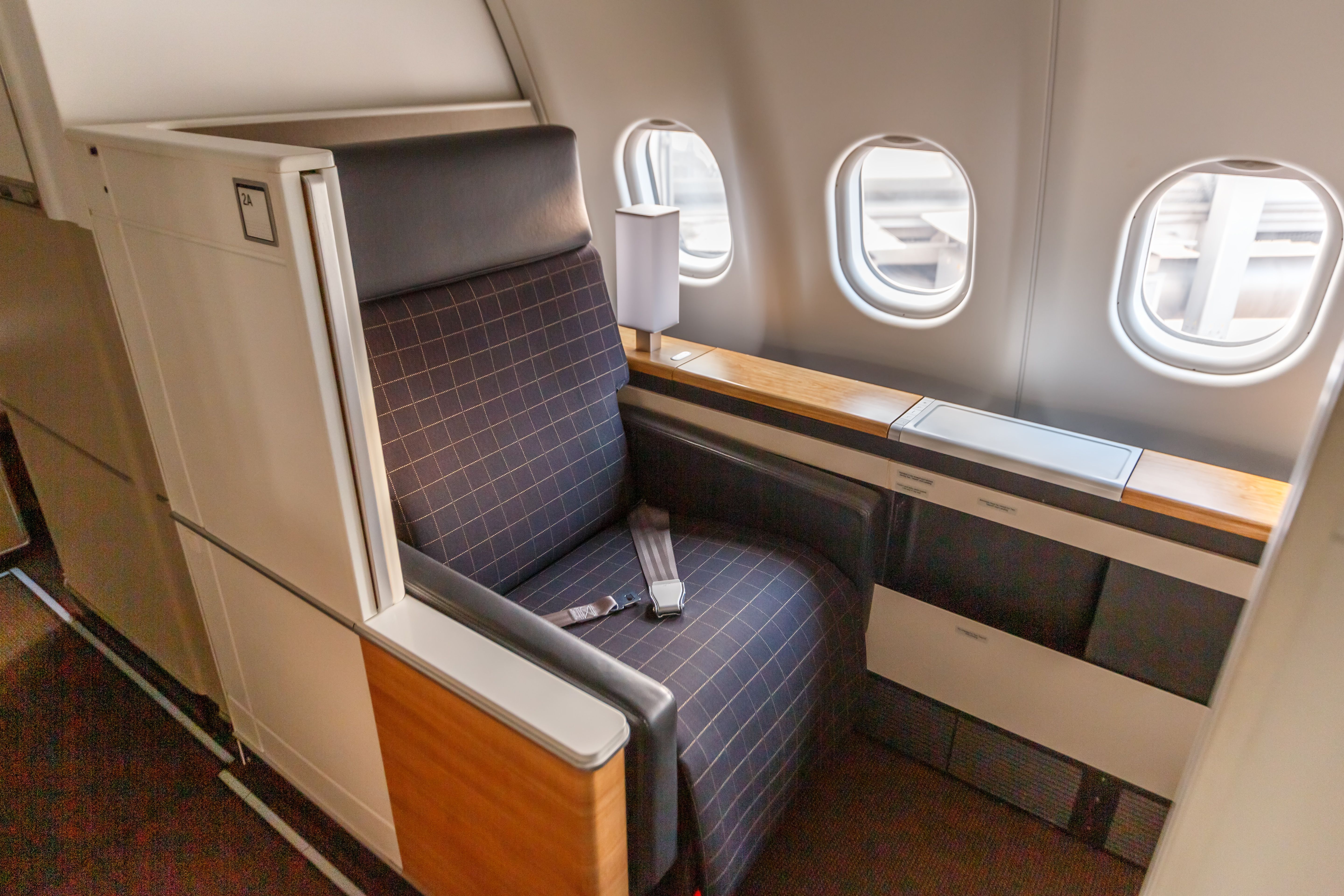 747-8 は、下層デッキの機首にファーストクラスの客室があることで特に注目に値しますが、A380 の上層デッキの客室も嗅ぎつけられるものではありません。ルフトハンザドイツ航空は、バレーパーキング、パーソナルアシスタント、専用ターミナルとラウンジ、さらにはリムジンなど、製品の多くの特典のほんの一部を備えたファーストクラスの体験を「思いのまま」と表現しています。