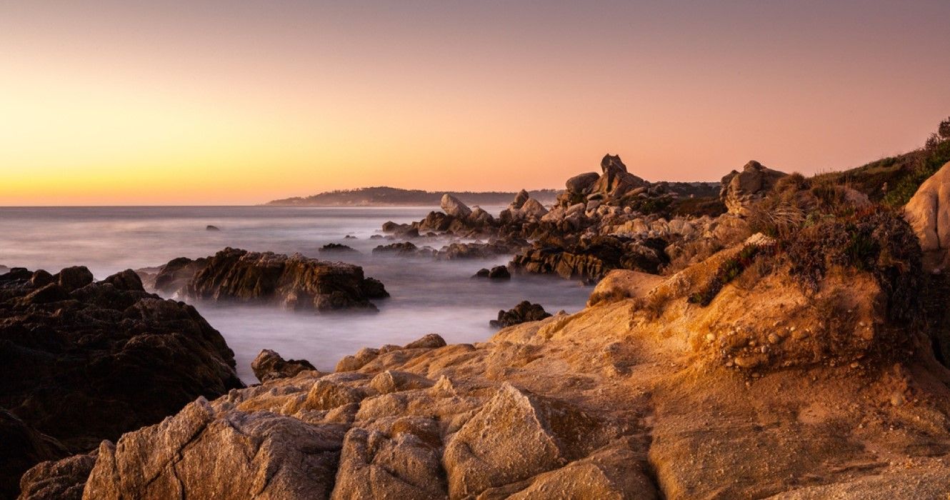 カリフォルニア州カーメルリバーステートビーチ、モナステリービーチの夕日
