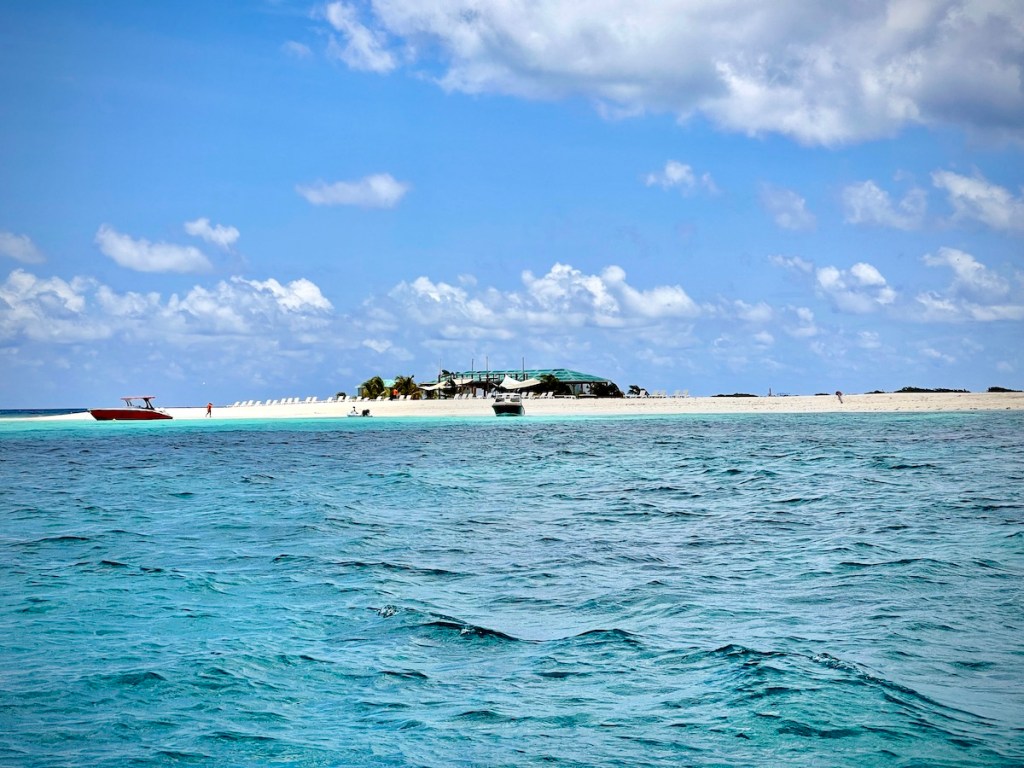バーでは素晴らしいラムパンチを提供しており、グリルでは常に素晴らしいリブ、シーフード、チキンを調理しています。木製テントの下で日陰にたむろしたり、素敵なラウンジチェアで日光浴をしたりできます。サンゴ礁がケイの周りを取り囲んでいて、生き生きとした魚が生息しているため、シュノーケルの装備をご持参ください。ここの雰囲気は古典的なカリブ海で、私の意見では、一日を過ごすのに最適な方法です。