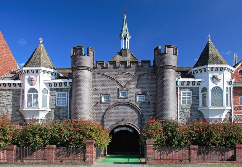 ファンタジー ガーデンズは、中世風の石造りの建物が特徴で、ブリティッシュ コロンビア州リッチモンドにある人気の遊園地でした。このスペースは、ビル ヴァンダー ザルムが 1984 年にキリスト教をテーマにした遊園地を建設するために土地を購入するまで、園芸センターとして使用されていました。かつての園芸センターのおかげで、ファンタジー ガーデンズの敷地は亀がいる池や植物で美しくデザインされました。